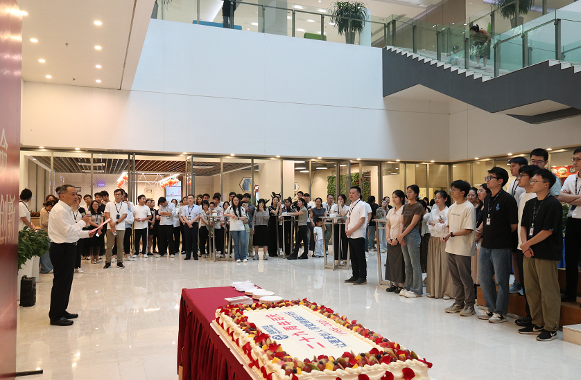 隨后,他與員工代表共同執(zhí)刀,切下象征團(tuán)結(jié)與希望的生日蛋糕,并親自為大家分發(fā)生日蛋糕。